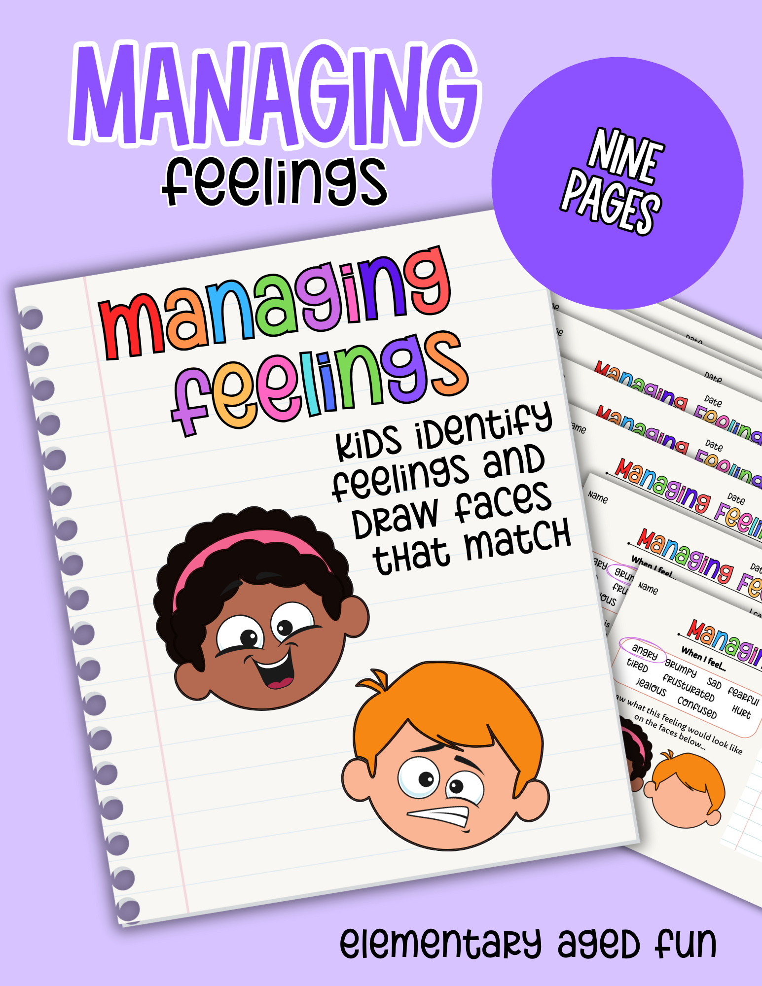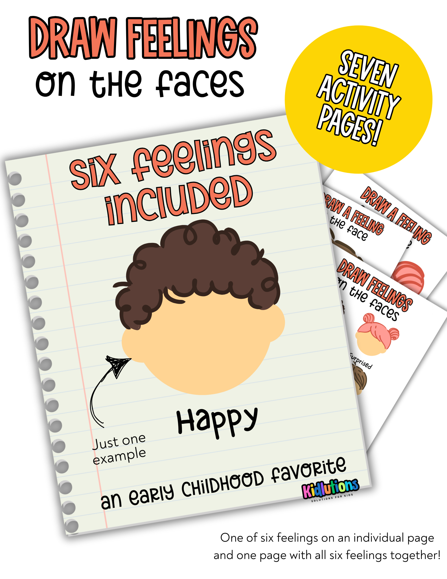 Kids explore nine different feelings and draw faces on the characters to match the circled feeling. Helps with feelings identification.