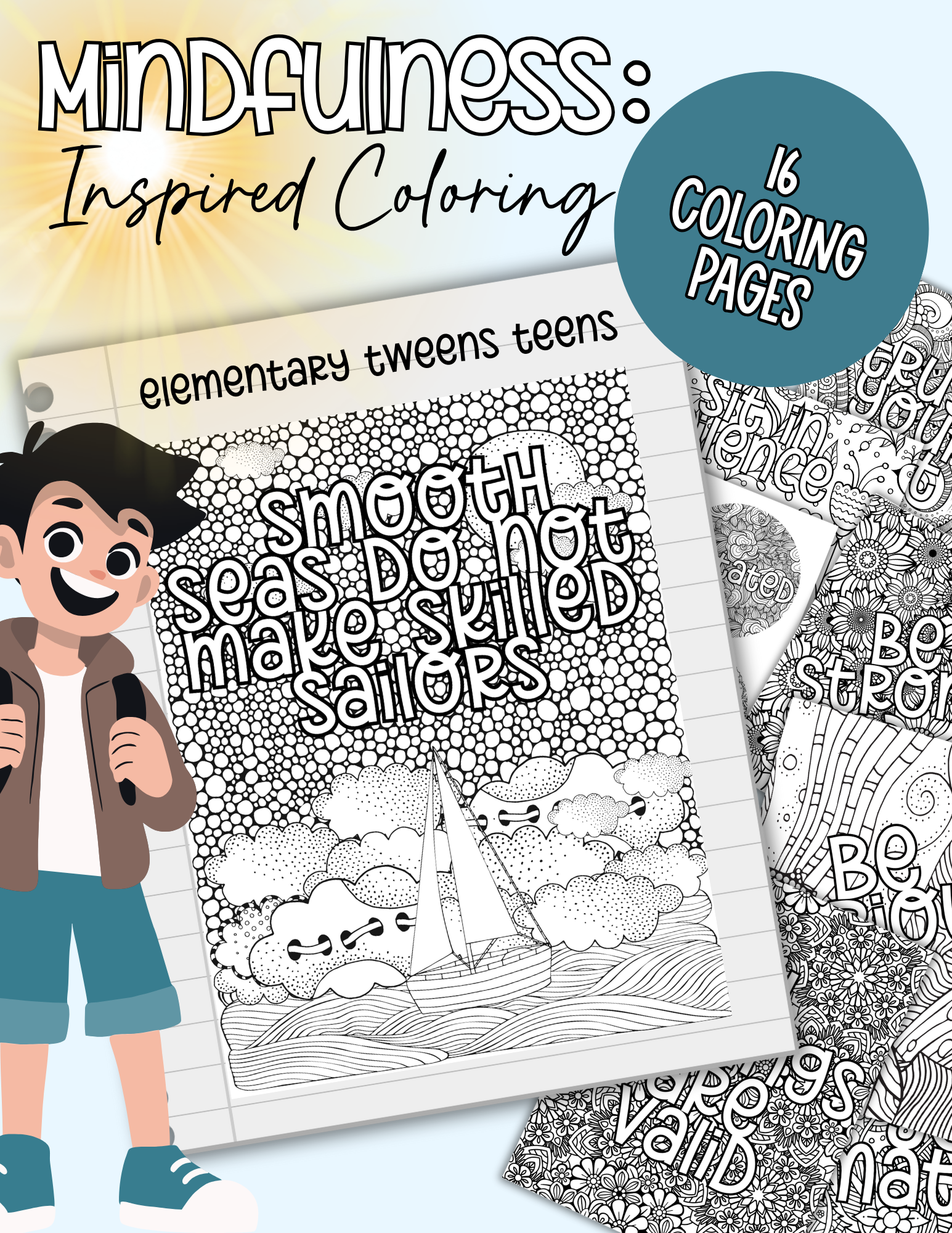 Mindful coloring is soothing to the limbic system/emotional brain. Inspiring messages on every page. These pages may be used with any age group.