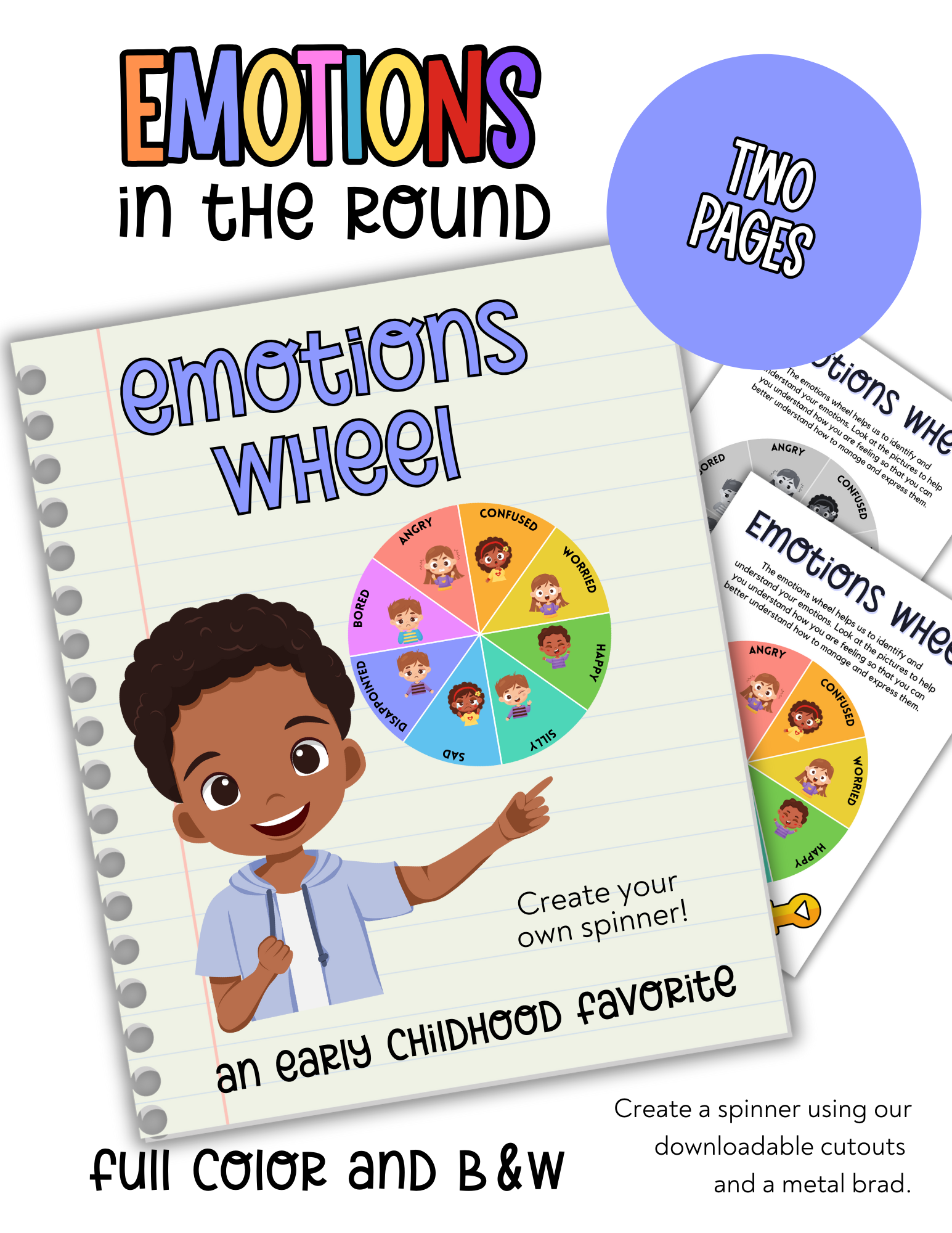 Create your own spinner to use at home, in the classroom or in the therapy room! Use a metal brad to attach the spinner (which is included as part of the printable). We recommend printing on cardstock to make this sturdy. Laminate for even more durability. Then, play away with naming emotions and talking about what might make someone feel that way! Ways to play are only limited by your imagination!