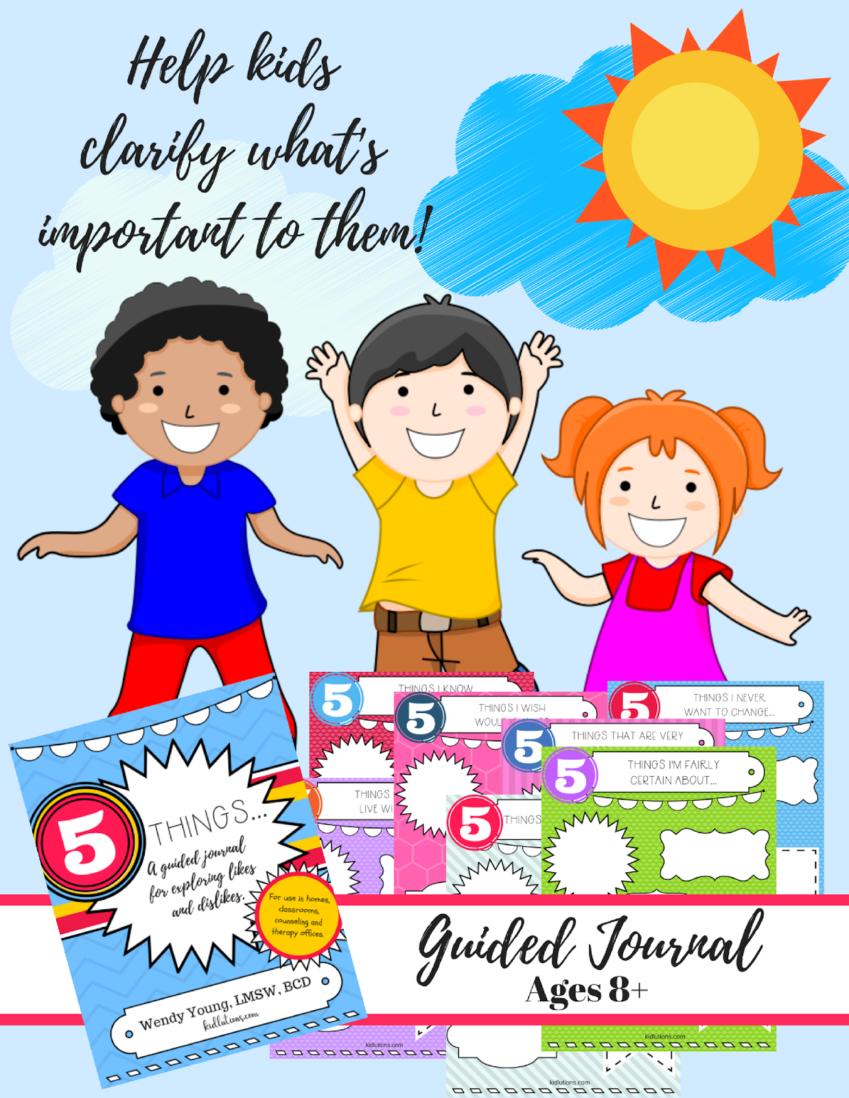 If you are looking for a tool to help kids, teens and adults explore what is important to them, improve self-concept and understanding of important others around them (think couples therapy or family therapy), look no further! A colorful, guided-journal supports kids, teens and adults in homes, classrooms and counseling offices.
