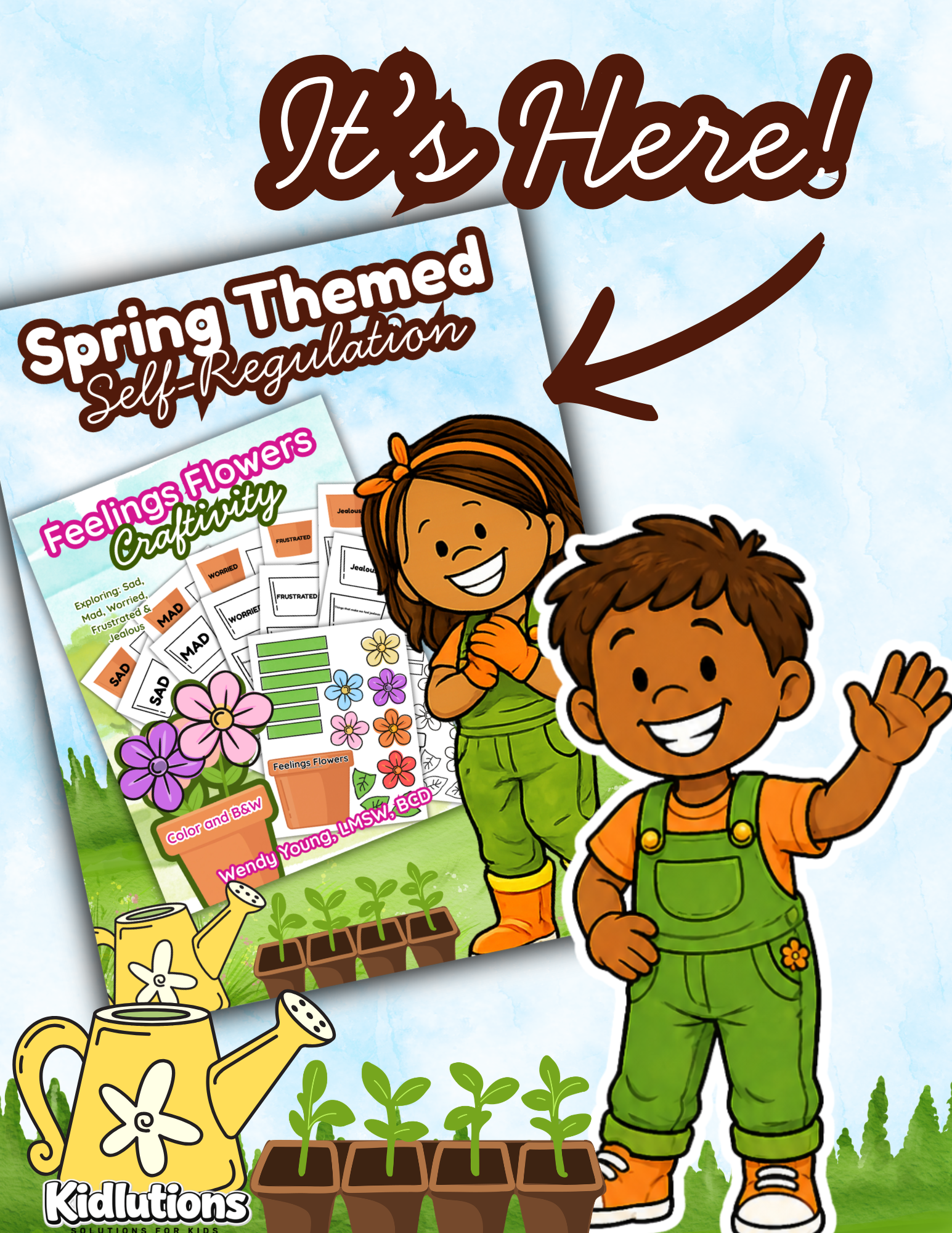 Each flower pot includes simple, developmentally appropriate prompts for kids to write or draw about feelings.
