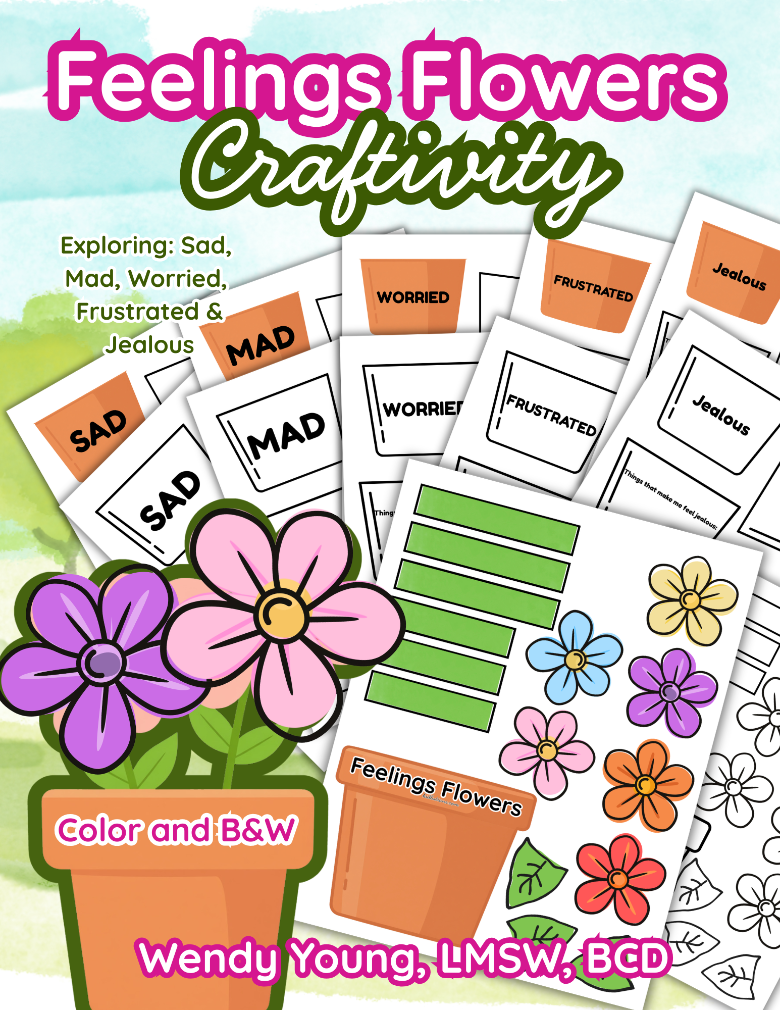 Individual feeling flower pots (Sad, Mad, Worried, Frustrated, Jealous)